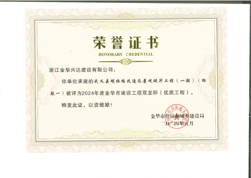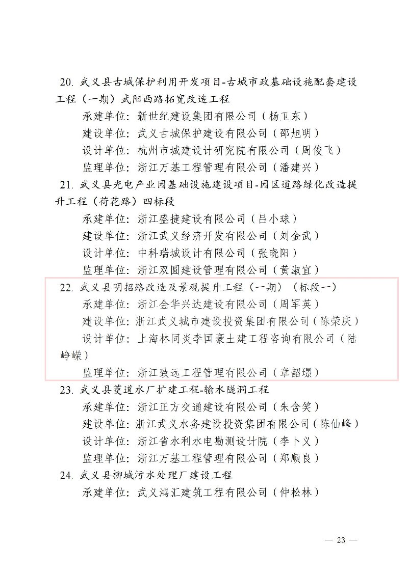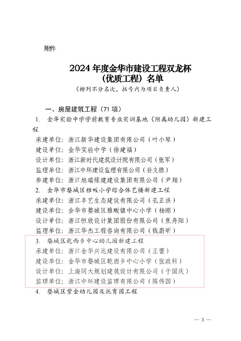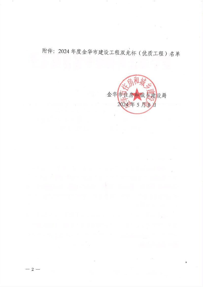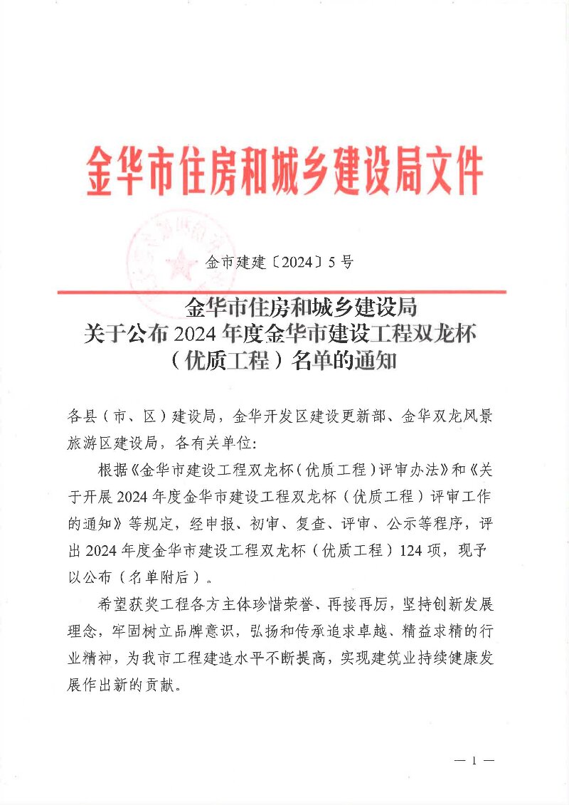 2024年度金华市建设工程双龙杯(优质工程)